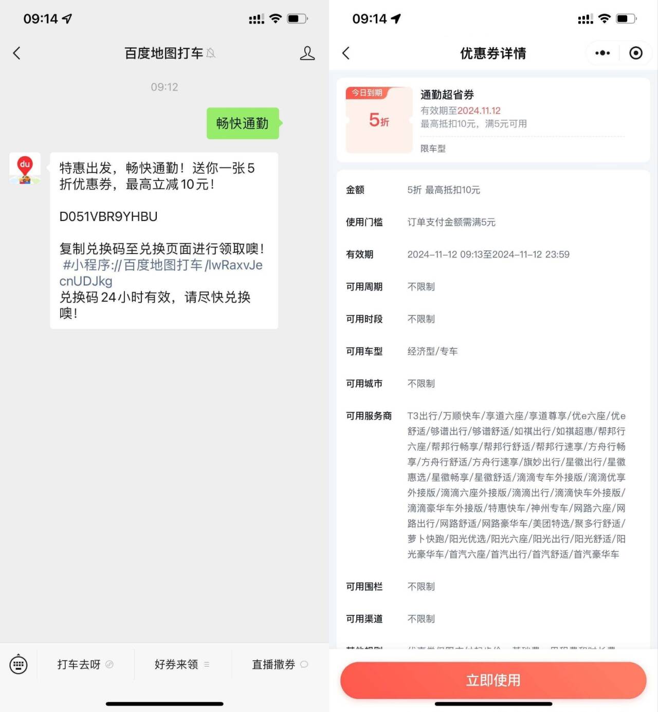 微信关注#公众号:百度地图打车 ->发送“无锡”-> 复制兑换码根据提示兑换,券最高可减10亓