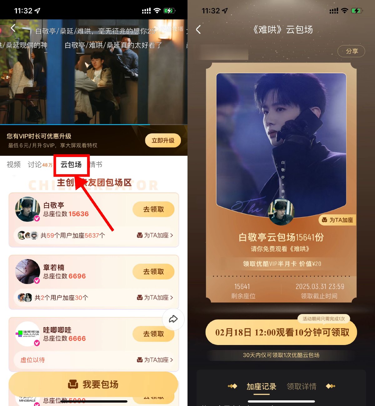 c优酷APP搜索“难哄”->视频下方“云包场”->今天中午12点开始看10分钟,即可领优酷会员15天,限量3.7万份先到先得